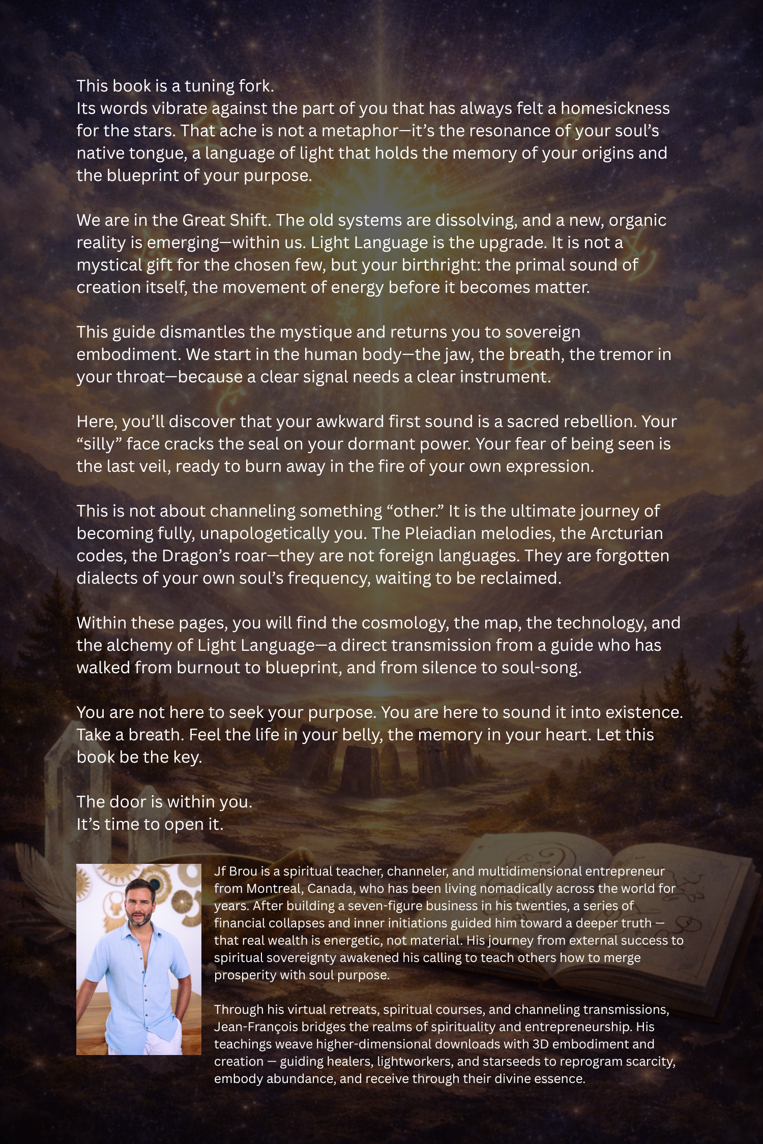 I’m Jean-François — a spiritual coach, channeler, and multidimensional teacher born in Montreal, Canada but having lived across the world while traveling in more than 50 countries.